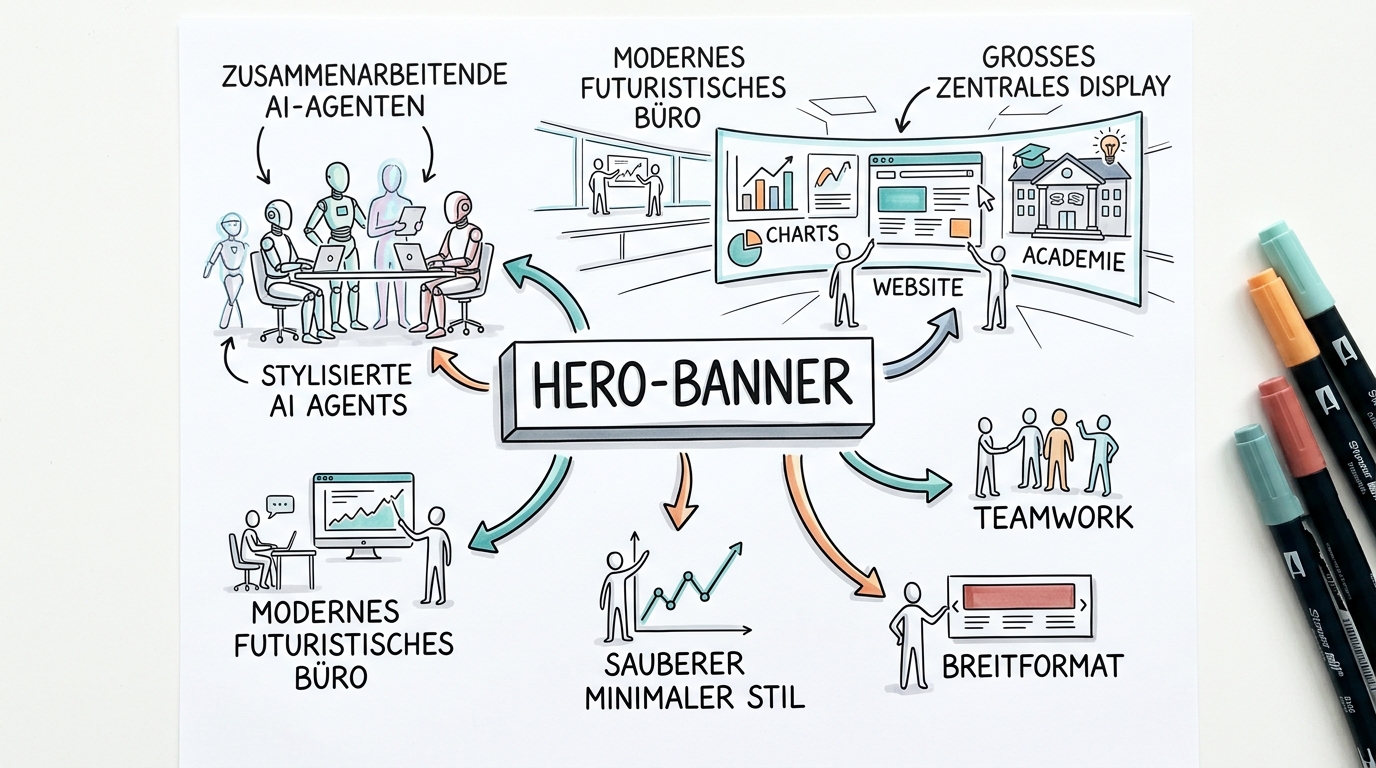 Spezialisierte KI-Agenten setzen Ihr Projekt um. Recherche, Content, Design, Veröffentlichung.